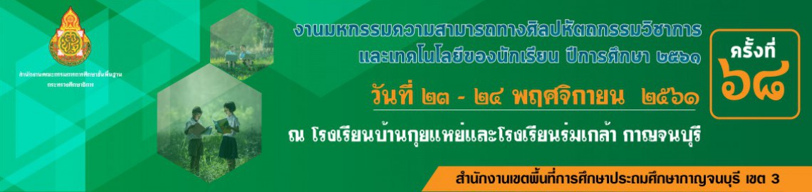 งานศิลปหัตถกรรมนักเรียน ระดับเขตพื้นที่การศึกษา ครั้งที่ 68 ประจำปีการศึกษา 2561 สังกัดเขตพื้นที่การศึกษาประถมศึกษากาญจนบุรี เขต ๓